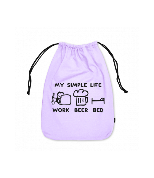 Small cotton pouch for man with design 1211 MY SIMPLE LIFE WORK BEER BED in color LAVENDER