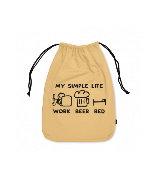 Small cotton pouch for man with design 1211 MY SIMPLE LIFE WORK BEER BED in color MUSTARD