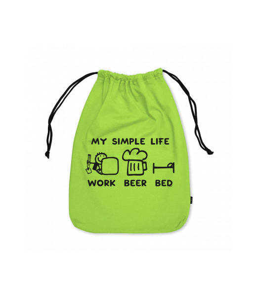 Small cotton pouch for man with design 1211 MY SIMPLE LIFE WORK BEER BED in color PARROT GREEN