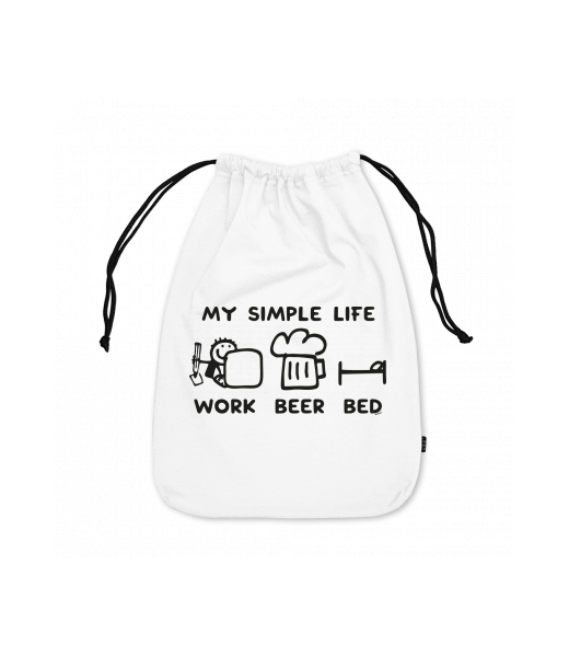 Small cotton pouch for man with design 1211 MY SIMPLE LIFE WORK BEER BED in color WHITE