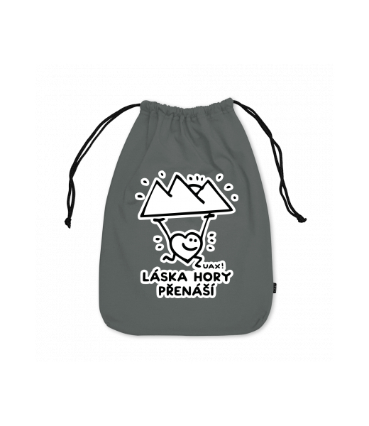 We make sustainable UAX clothing! - hand sewn in the Czech Republic uaxMen uaxAll productsProtective cotton masksSMALL COTTON POUCHdesign 1264 - LÁSKA HORY PŘENÁŠÍDARK GRAY
