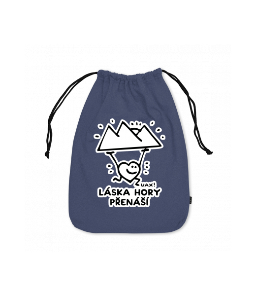 Small cotton pouch for man with design 1264 LÁSKA HORY PŘENÁŠÍ in color JEANS