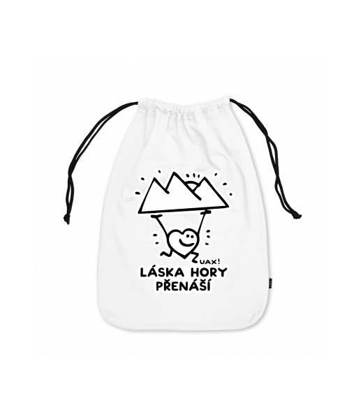 We make sustainable UAX clothing! - hand sewn in the Czech Republic uaxMen uaxAll productsProtective cotton masksSMALL COTTON POUCHdesign 1264 - LÁSKA HORY PŘENÁŠÍWHITE