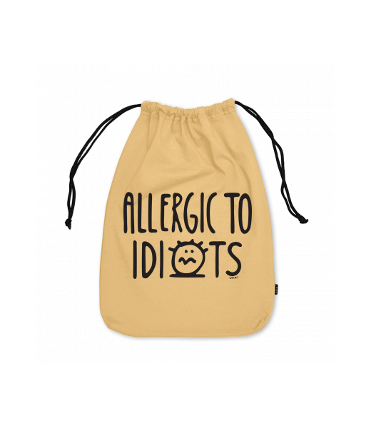 Small cotton pouch for man with design 1354 ALLERGIC TO IDIOTS in color MUSTARD