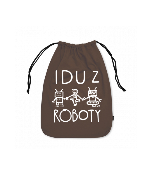 Small cotton pouch for man with design 1377 IDU Z ROBOTY 2 in color CHESTNUT