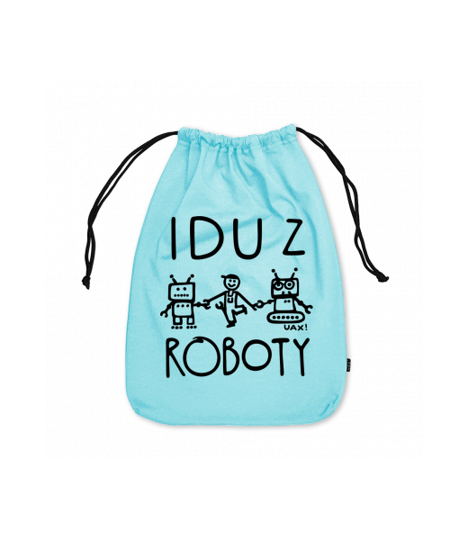 Small cotton pouch for man with design 1377 IDU Z ROBOTY 2 in color PASTEL BLUE