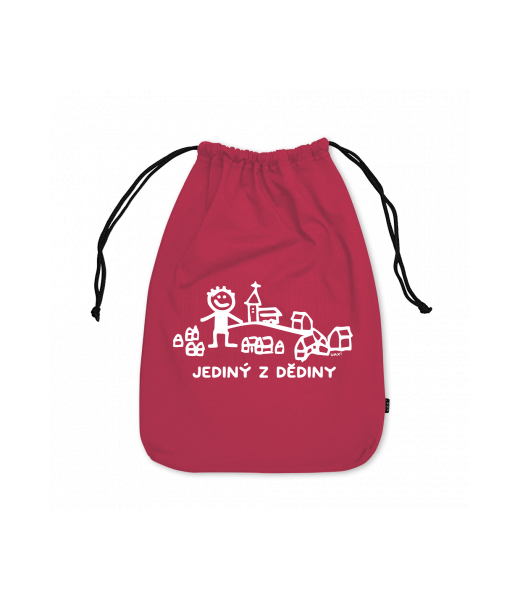 Small cotton pouch for man with design 1393 JEDINÝ Z DĚDINY in color CHILLY PEPPER RED