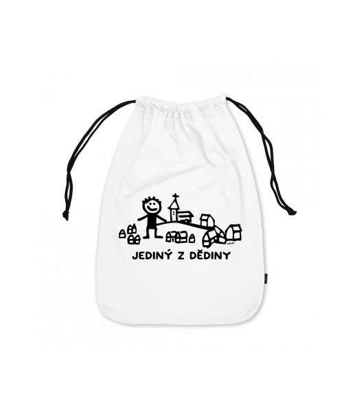 Small cotton pouch for man with design 1393 JEDINÝ Z DĚDINY in color WHITE