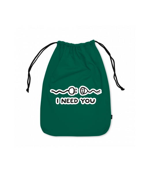 Small cotton pouch for man with design 581 I NEED YOU in color UNIVERSITY GREEN