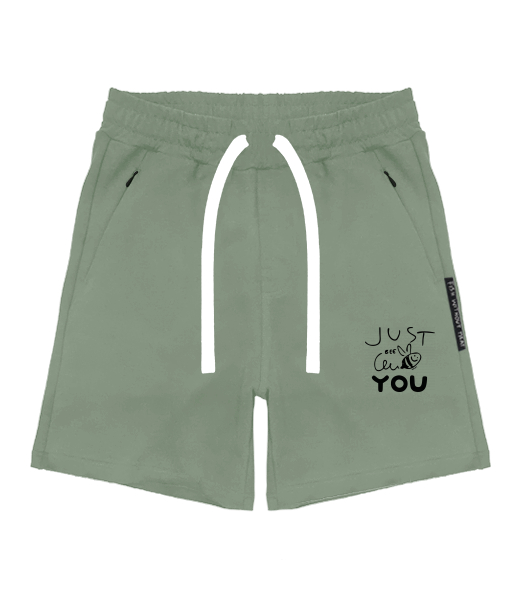 MEN'S SHORTS WITH ZIP POCKET with an original print for man with design 1294 JUST BEE YOU in color OLIVA
