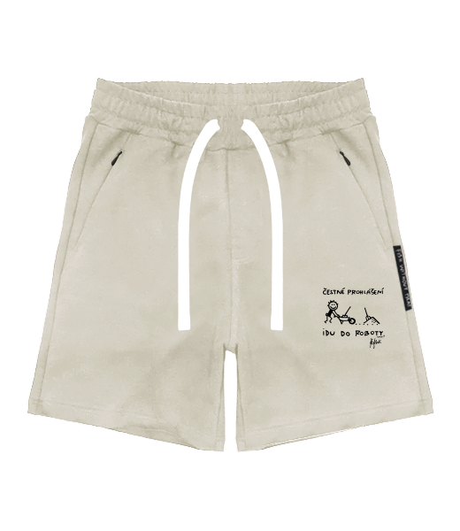 MEN'S SHORTS WITH ZIP POCKET with an original print for man with design 1303 ČESTNÉ PROHLÁŠENÍ IDU DO ROBOTY in color IVORY