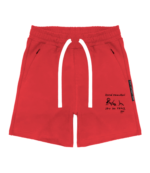 MEN'S SHORTS WITH ZIP POCKET with an original print for man with design 1304 ČESTNÉ PROHLÁŠENÍ JDU DO PRÁCE in color RED