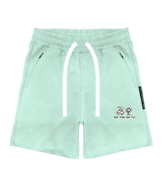 MEN'S SHORTS WITH ZIP POCKET with an original print for man with design 1306 SEE YOU ON TV in color MINT