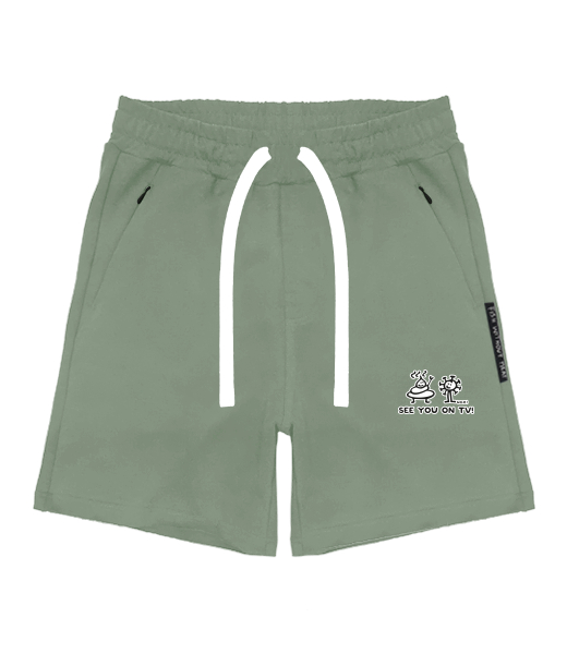 MEN'S SHORTS WITH ZIP POCKET with an original print for man with design 1306 SEE YOU ON TV in color OLIVA