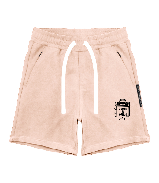 MEN'S SHORTS WITH ZIP POCKET with an original print for man with design 1322 BOOK AND WINE in color CAPPUCINO
