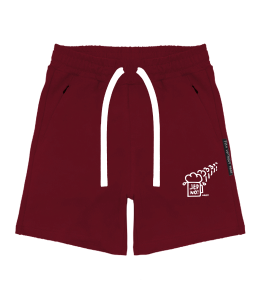 MEN'S SHORTS WITH ZIP POCKET with an original print for man with design 1340 JEDNO in color DARK RED