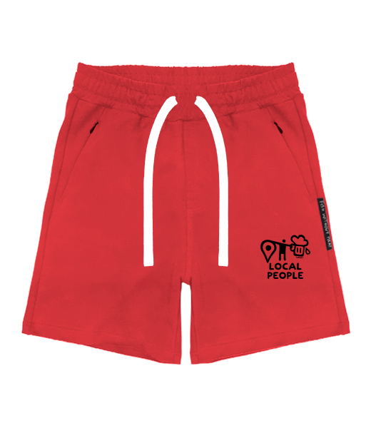 MEN'S SHORTS WITH ZIP POCKET with an original print for man with design 1360 LOCAL PEOPLE BIG in color RED
