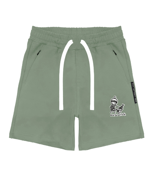 MEN'S SHORTS WITH ZIP POCKET with an original print for man with design 523 MASOCHYSTA in color OLIVA