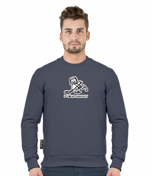 We make sustainable UAX clothing! - hand sewn in the Czech Republic uaxMen uaxAll productsSweatshirtsCREWNECK MEN CLASSICdesign 1100 - I LOVE HOCKEYGRAY INK