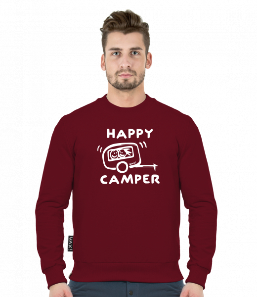 Men's sweatshirt CREWNECK MEN CLASSIC for man with design 1116 HAPPY CAMPER in color DARK RED