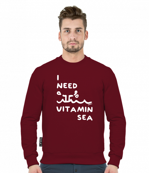 Men's sweatshirt CREWNECK MEN CLASSIC for man with design 1132 I NEED VITAMIN SEA in color DARK RED