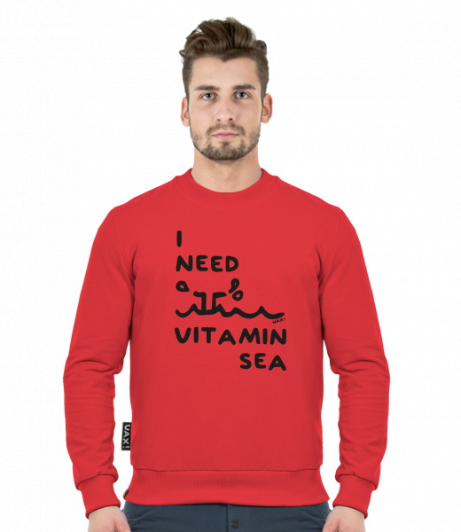 Men's sweatshirt CREWNECK MEN CLASSIC for man with design 1132 I NEED VITAMIN SEA in color RED