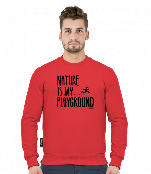 Men's sweatshirt CREWNECK MEN CLASSIC for man with design 1160 NATURE IS MY PLAYGROUND in color RED