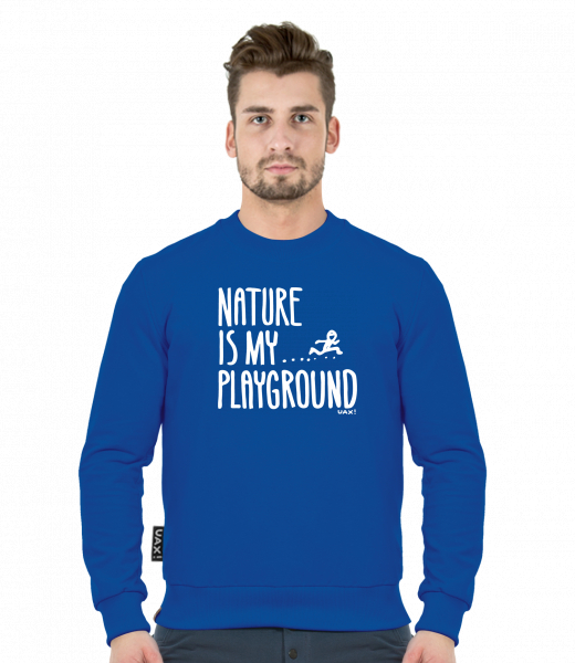 Men's sweatshirt CREWNECK MEN CLASSIC for man with design 1160 NATURE IS MY PLAYGROUND in color ROYAL BLUE