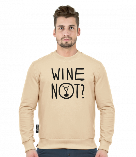 Men's sweatshirt CREWNECK MEN CLASSIC for man with design 1210 WINE NOT in color CARAMEL