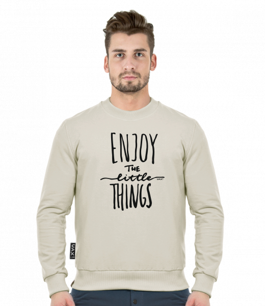 Men's sweatshirt CREWNECK MEN CLASSIC for man with design 1222 ENJOY THE LITTLE THINGS in color IVORY