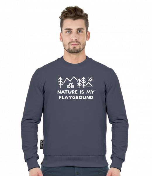 Men's sweatshirt CREWNECK MEN CLASSIC for man with design 1223 NATURE IS MY PLAYGROUND in color GRAY INK