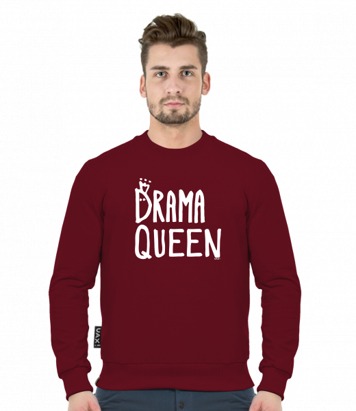 Men's sweatshirt CREWNECK MEN CLASSIC for man with design 1350 DRAMA QUEEN in color DARK RED