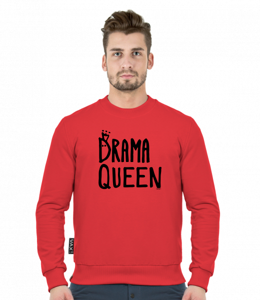 Men's sweatshirt CREWNECK MEN CLASSIC for man with design 1350 DRAMA QUEEN in color RED