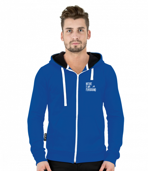 Men's hoodie slim with print for man with design 1160 NATURE IS MY PLAYGROUND in color ROYAL BLUE
