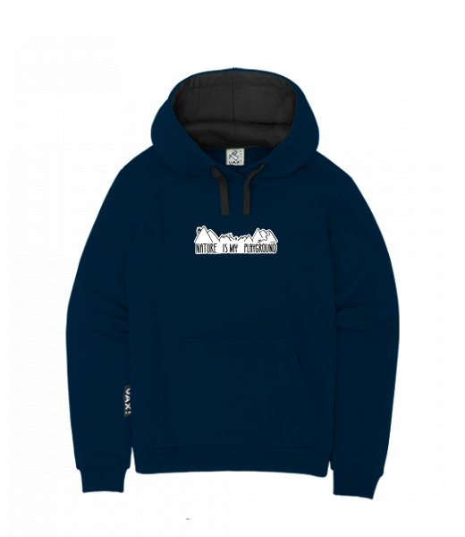MEN'S INSULATED KANGAROO HOODIE for man with design 1178 MY PLAYGROUND in color DARK NAVY