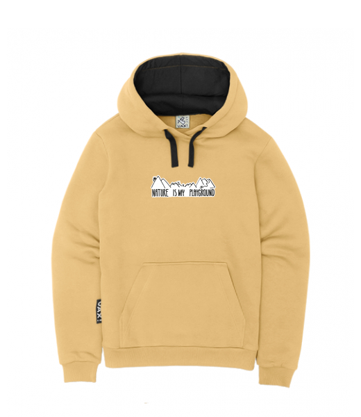 MEN'S INSULATED KANGAROO HOODIE for man with design 1178 MY PLAYGROUND in color MUSTARD