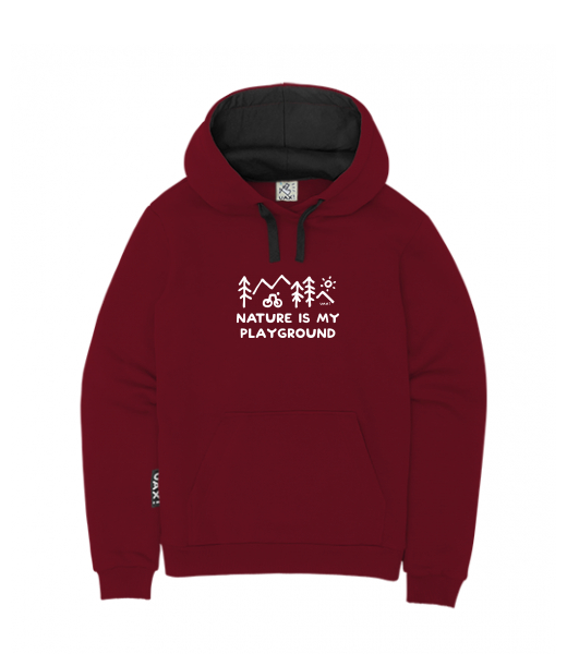MEN'S INSULATED KANGAROO HOODIE for man with design 1223 NATURE IS MY PLAYGROUND in color DARK RED