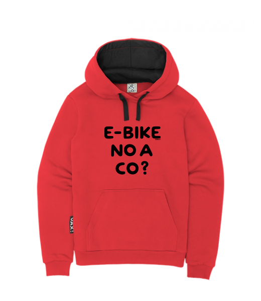 MEN'S INSULATED KANGAROO HOODIE for man with design 1292 E-BIKE NO A CO? in color RED