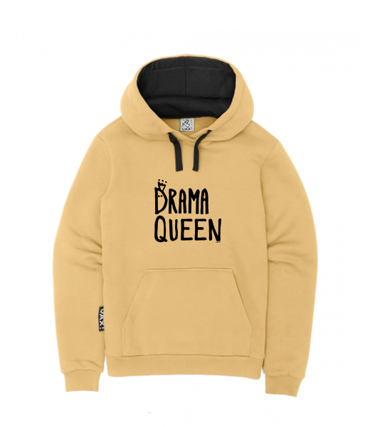 MEN'S INSULATED KANGAROO HOODIE for man with design 1350 DRAMA QUEEN in color MUSTARD