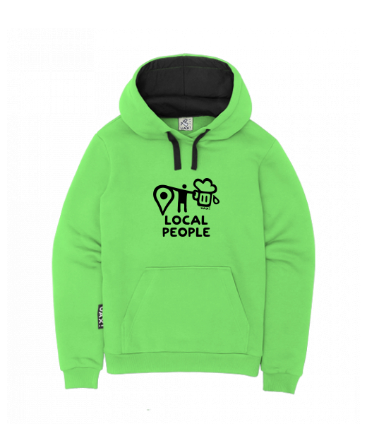 MEN'S INSULATED KANGAROO HOODIE for man with design 1360 LOCAL PEOPLE BIG in color APPLE