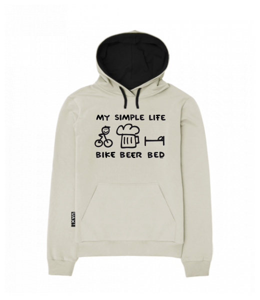 MEN'S SWEATSHIRT KANGAROO LIGHT for man with design 1056 BIKE BEER BED in color IVORY