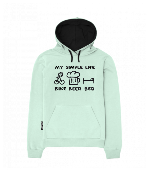MEN'S SWEATSHIRT KANGAROO LIGHT for man with design 1056 BIKE BEER BED in color MINT
