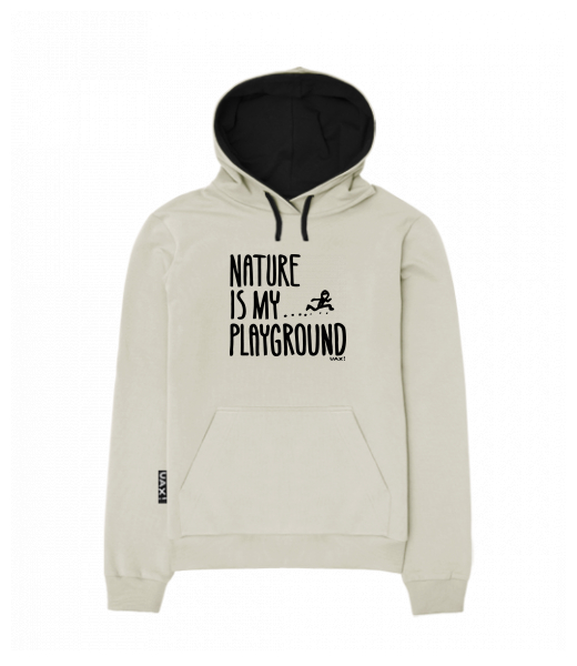 MEN'S SWEATSHIRT KANGAROO LIGHT for man with design 1160 NATURE IS MY PLAYGROUND in color IVORY