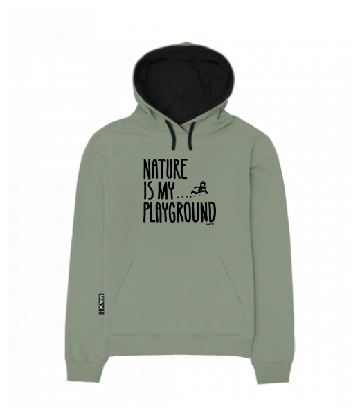 MEN'S SWEATSHIRT KANGAROO LIGHT for man with design 1160 NATURE IS MY PLAYGROUND in color OLIVA