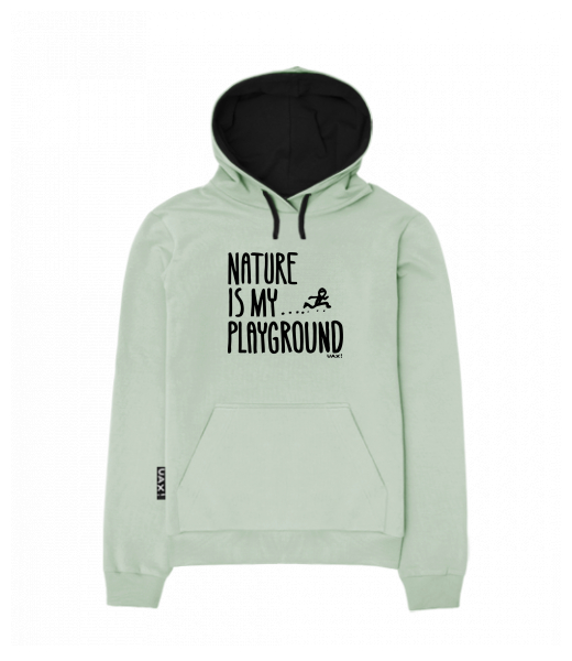 MEN'S SWEATSHIRT KANGAROO LIGHT for man with design 1160 NATURE IS MY PLAYGROUND in color PISTACHIO
