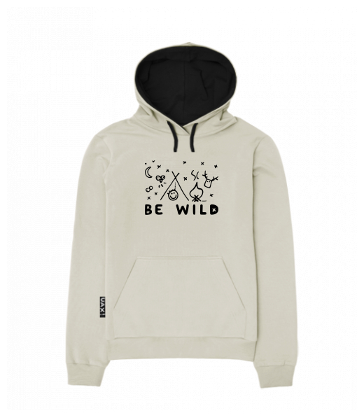 MEN'S SWEATSHIRT KANGAROO LIGHT for man with design 1174 BE WILD in color IVORY