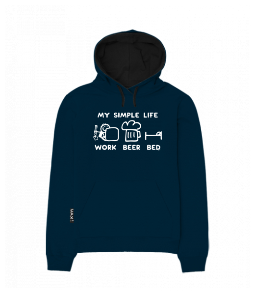 We make sustainable UAX clothing! - hand sewn in the Czech Republic uaxMen uaxAll productsSweatshirtsMEN'S SWEATSHIRT KANGAROO LIGHTdesign 1211 - MY SIMPLE LIFE WORK BEER BEDDARK NAVY