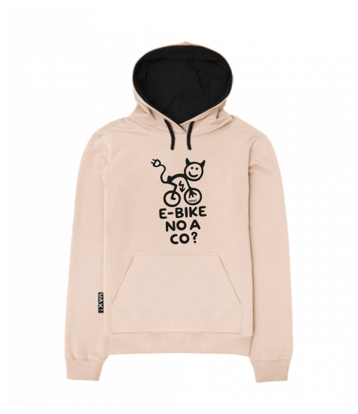 MEN'S SWEATSHIRT KANGAROO LIGHT for man with design 1291 E-BIKE NO A CO? in color CAPPUCINO