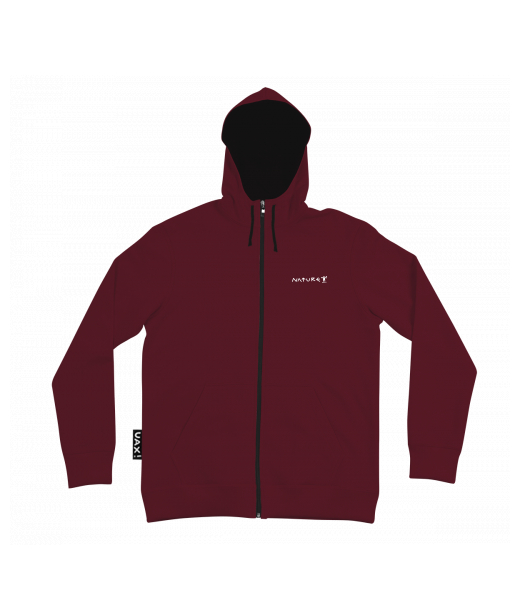 Men's hooded sweatshirt with zipper and print for man with design 1214 LOVE NATURE in color DARK RED