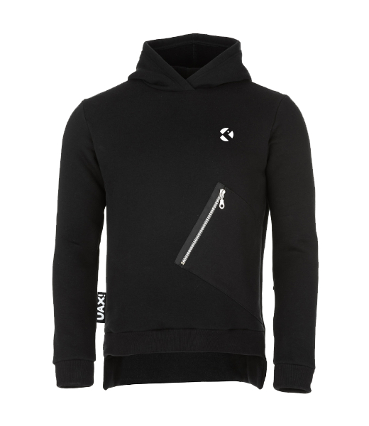 UNISEX ASYMMETRIC URBAN hooded sweatshirt, smooth sweatshirt over the head, with a large zip pocket on the front, zip pocket on the left sleeve, comfortable fit, lower back hem. Comfortable, practical and multi-purpose unisex sweatshirt.